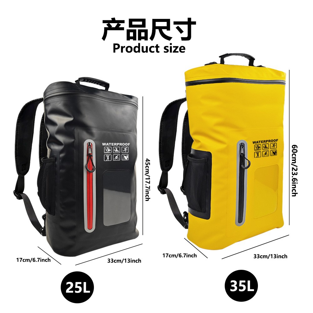 IPX7 Waterproof Dry Bag 25L/35L--Airtight gradeZipper waterproof Backpack -- Boating & Kayak Accessories - Essentials for Camping Swimming Beach Fishing Rafting Travel - Black/Yellow/Green Price: Id:BP08