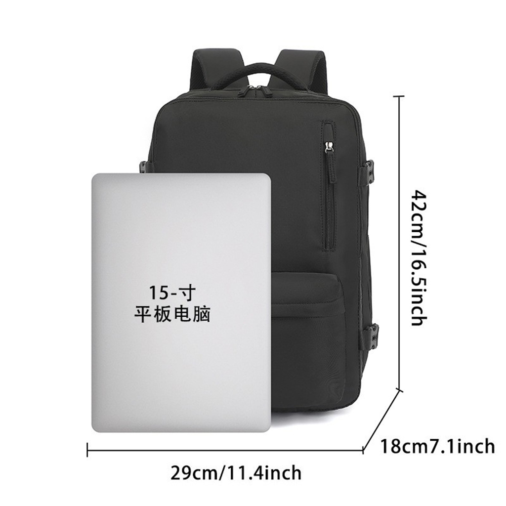 Travel Outdoor Large capacity 36-55L Expandable Backpack for men --16’’ Laptop Compartment, Water Resistant,USB Charging port, Black /Grey